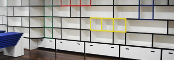 ビブリオキッズの絵本は写真の4名の絵本作家の方々に選んでいただきました。選書者4名にはそれぞれ色が決めてあり、同色の本棚に選書した絵本を展示しています。